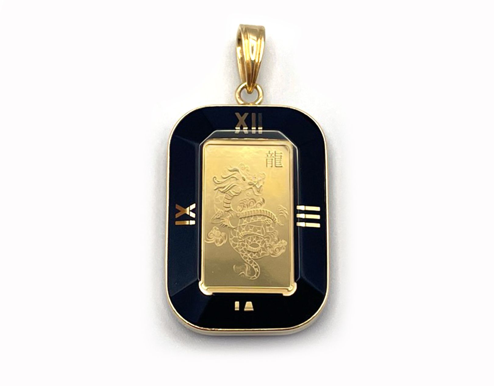 K24/K18 インゴット 1g ドラゴン ペンダントトップ ブラック 新品
