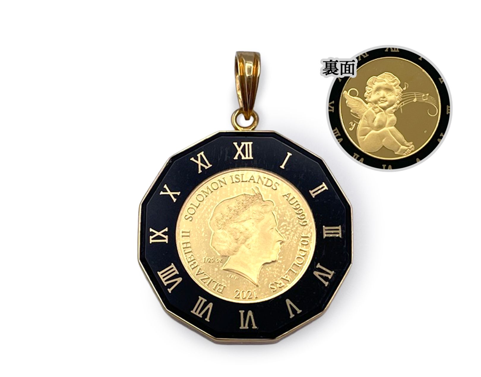K24/K18 エリザベス/エンジェル コイン 1/25オンス ペンダントトップ ブラック 新品