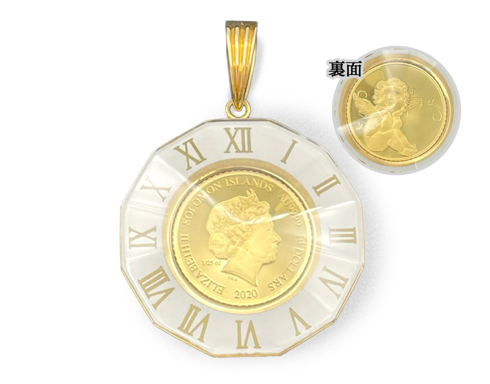 K24/K18 エリザベス/エンジェル コイン 1/25オンス ペンダントトップ ホワイト 新品