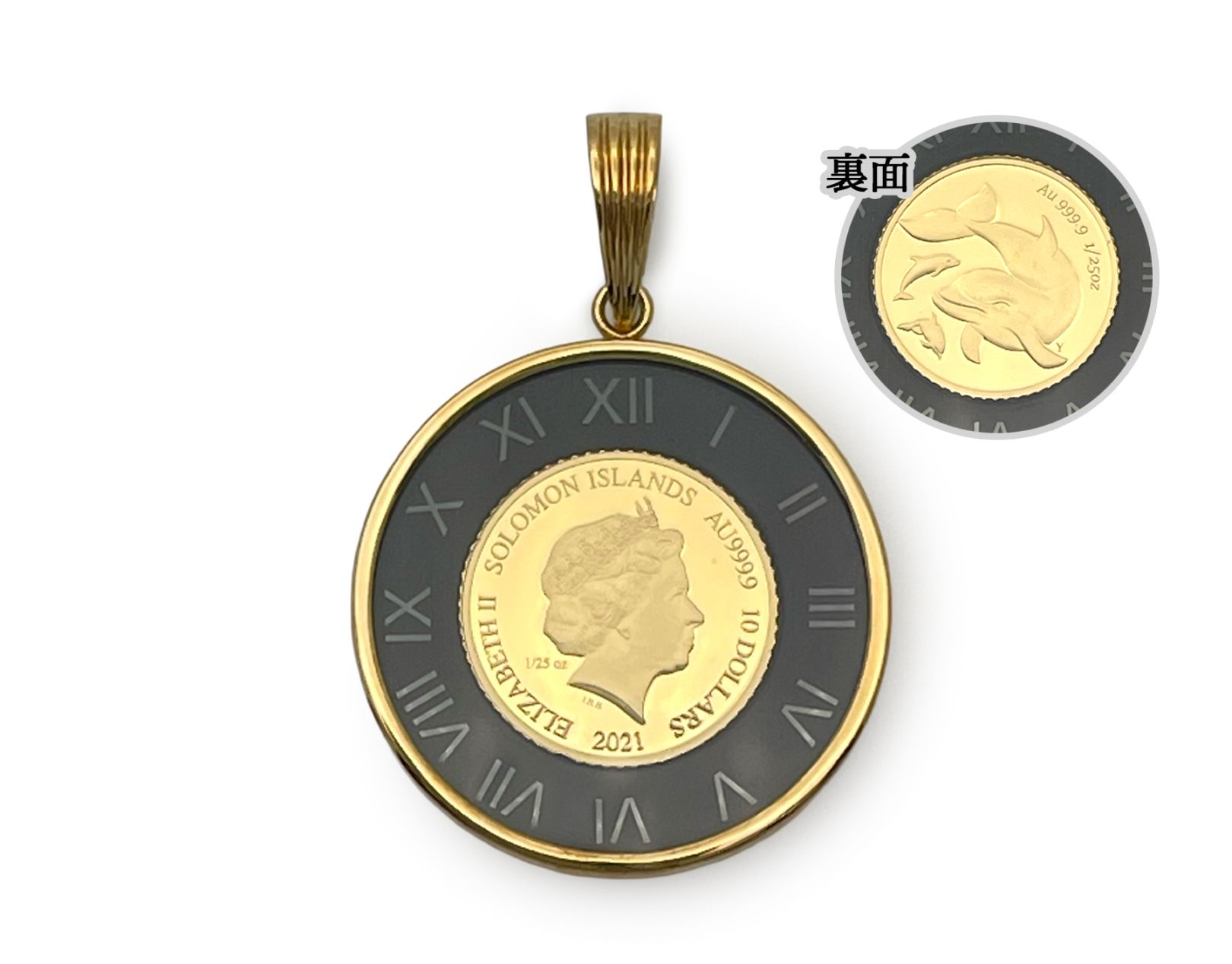 K24/K18 エリザベス/ドルフィン コイン 1/25オンス ペンダントトップ マットブラック 新品