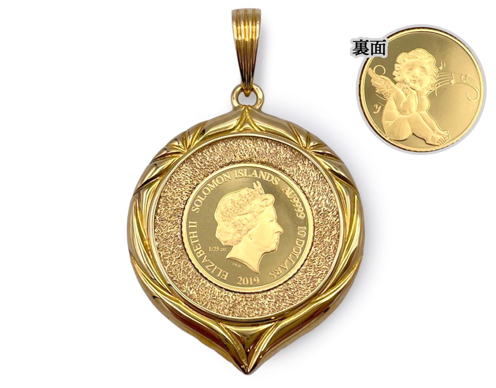 K24/K18 エリザベス/エンジェル コイン 1/25オンス ペンダントトップ 新品