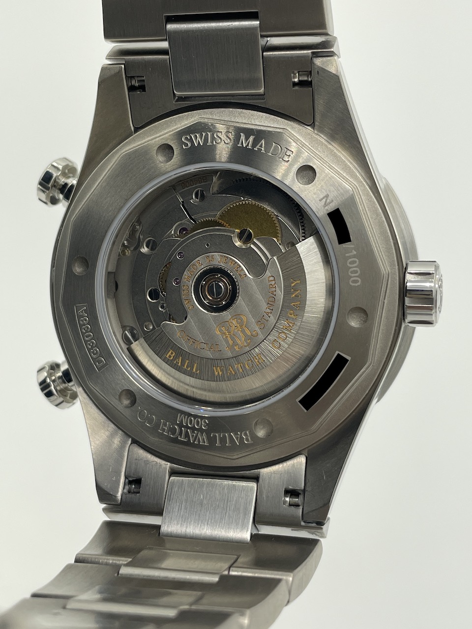 ケースはチタン製で、針やインデックスにはBALL独自の夜光塗料、自発光マイクロガスライトを使用しています。