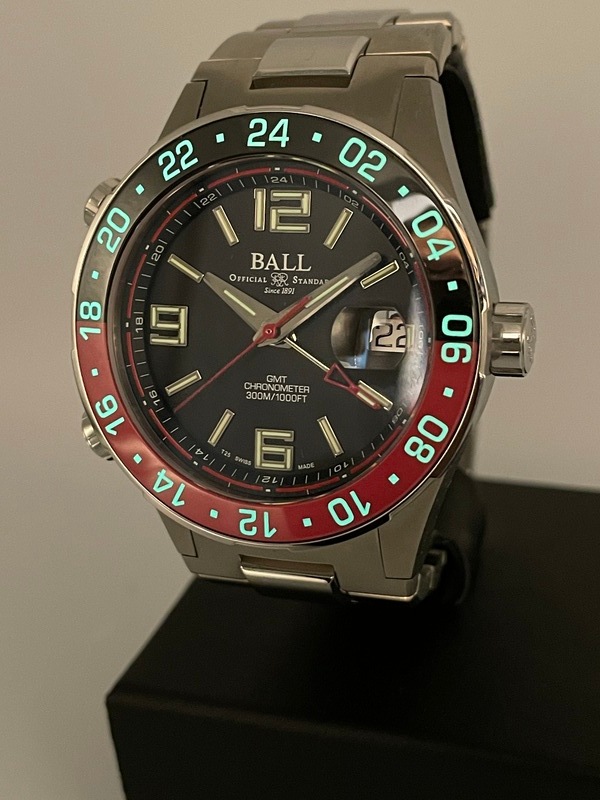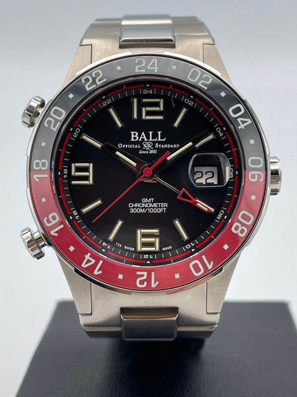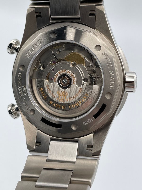 ケースはチタン製で、針やインデックスにはBALL独自の夜光塗料、自発光マイクロガスライトを使用しています。