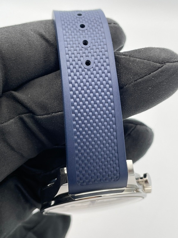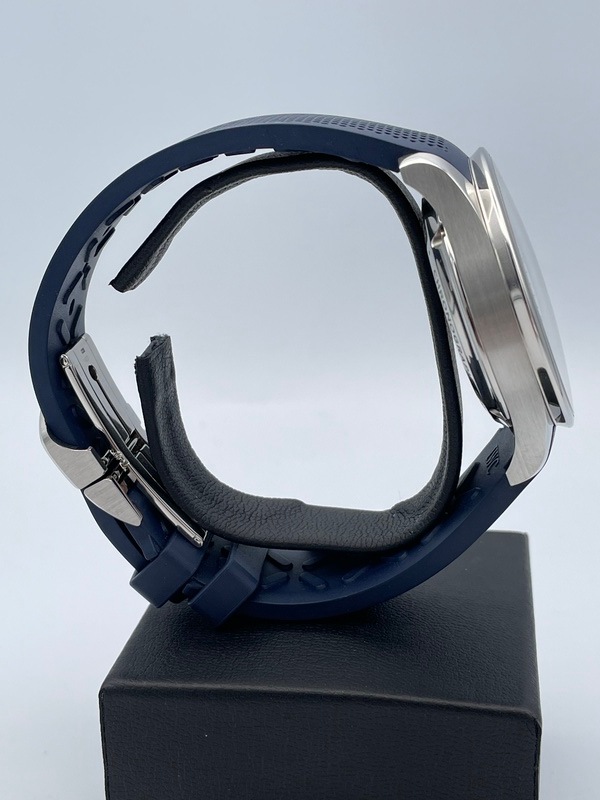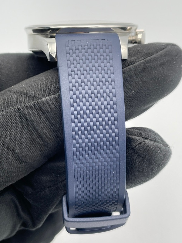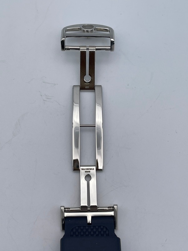 現在ラバーストラップが装着されていますが、新品で純正のアリゲーターレザーストラップと尾錠も付属したおすすめの逸品です。
