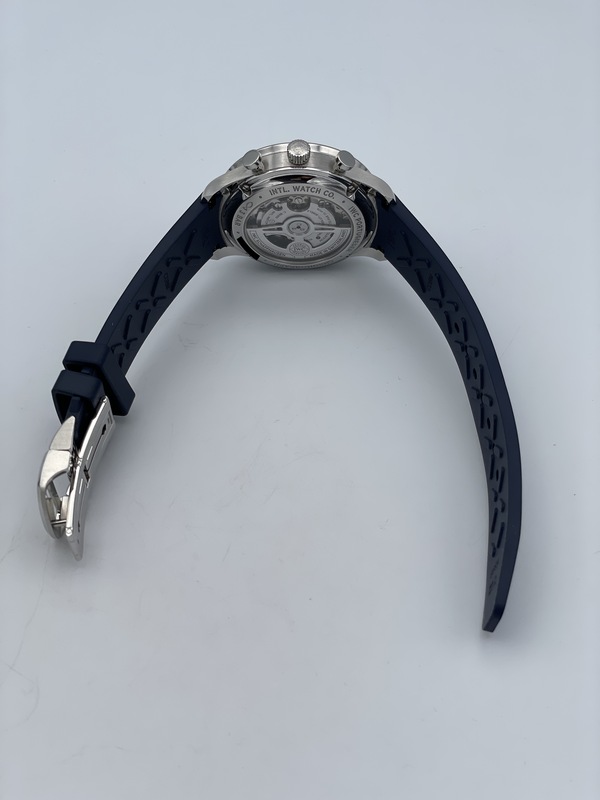 ムーブメントはIWC自社製のCal.69355を搭載、サファイアガラスのシースルーケースバックから伝統的なコラムホイール・デザインを持つ堅牢かつ正確なクロノグラフムーブメントを鑑賞出来ます。