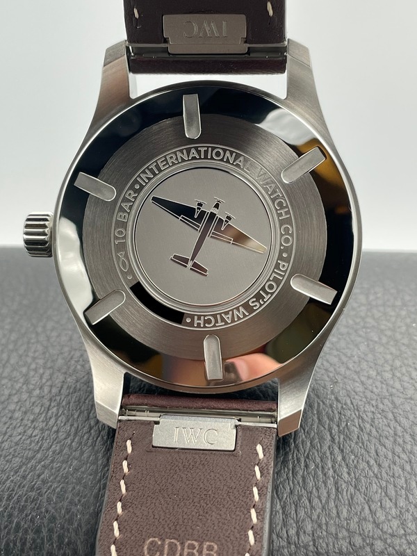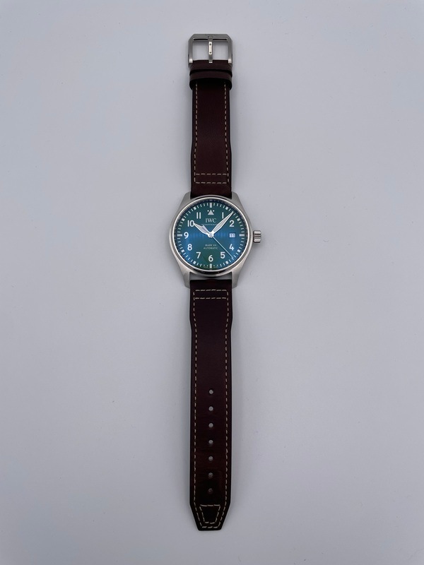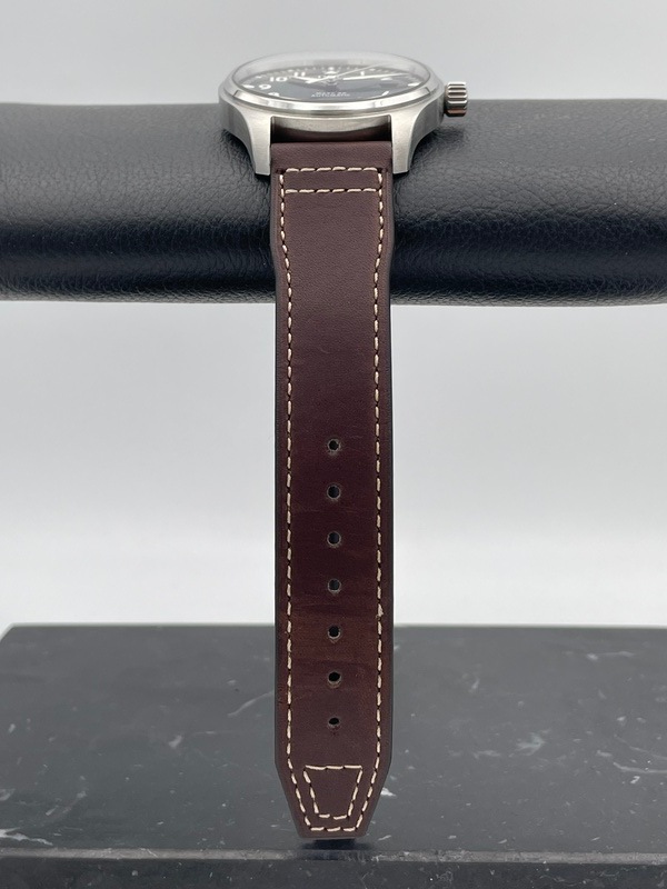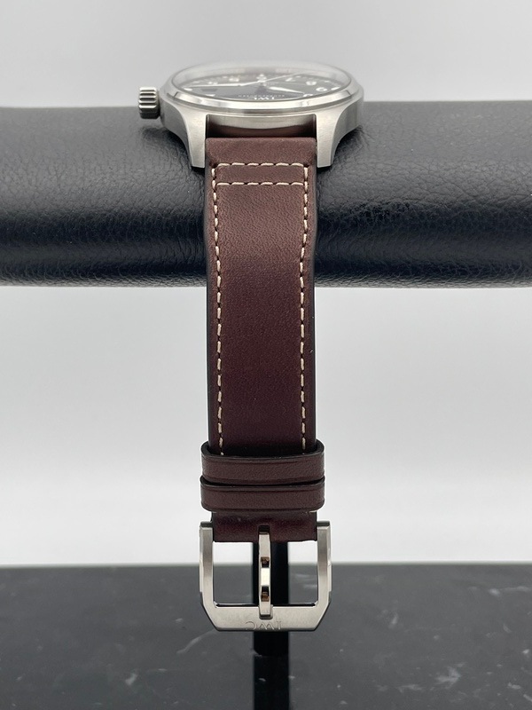 ストラップはブラウンのカーフレザーで、IWC独自の「EASX-CHANGE」システムにより工具を使わずにワンタッチでストラップの交換が出来ます。