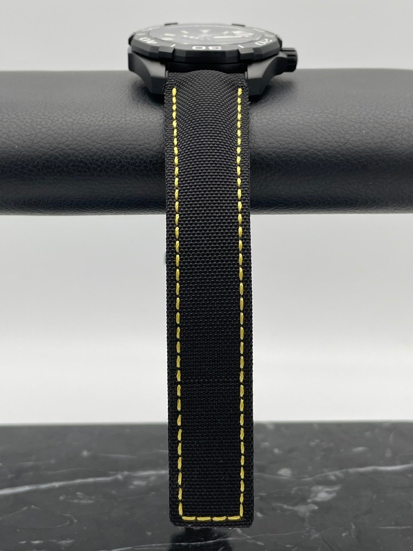同じくイエローのステッチが入ったブラックのストラップはナイロン製で、軽く着用感も良好です。
