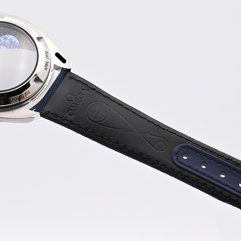 ストラップの裏地にはアポロ13号の軌道がエンボス加工で描かれています。