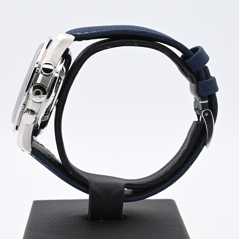 ケース径は42mmで、ブルーのナイロン製ファブリックストラップを採用。