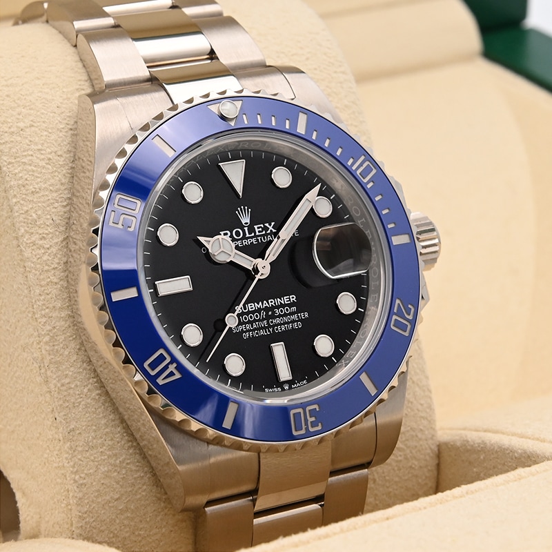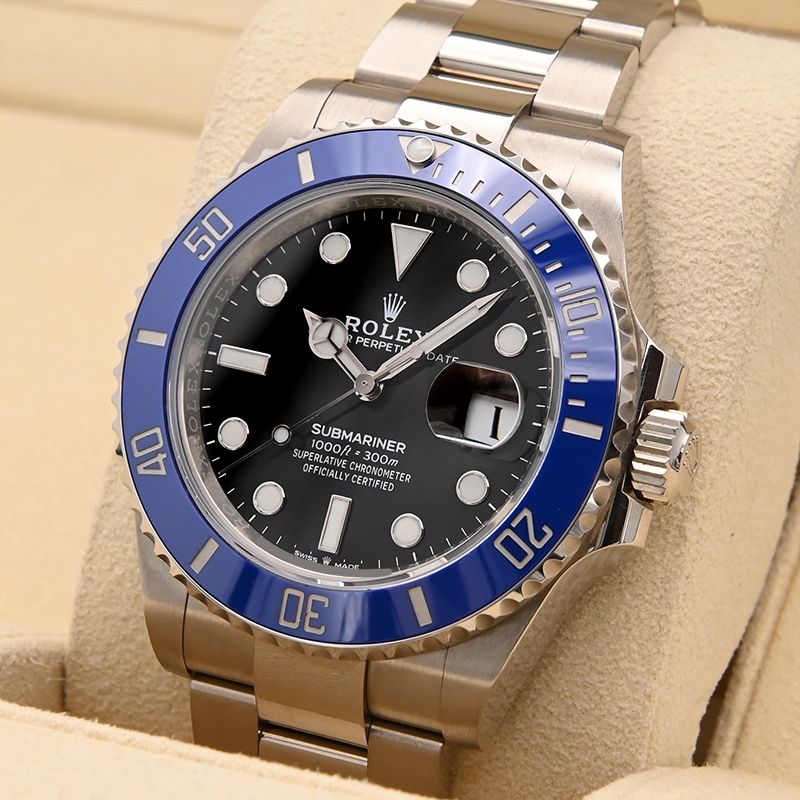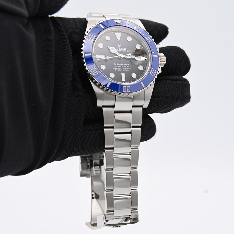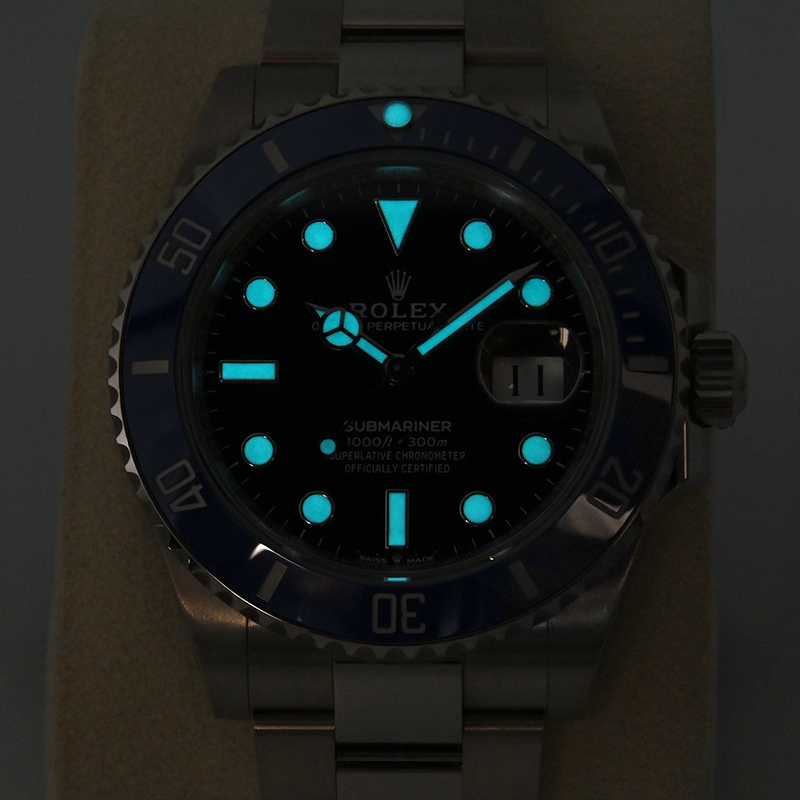 こちらの「サブマリーナー」はホワイトゴールド製の金無垢モデル126619LBとなります。