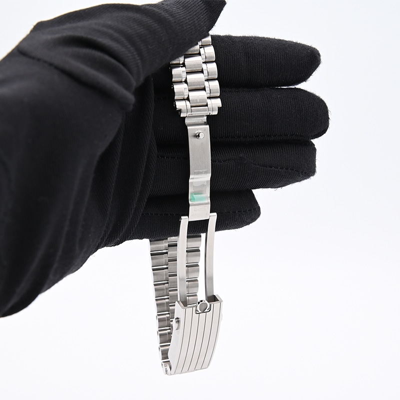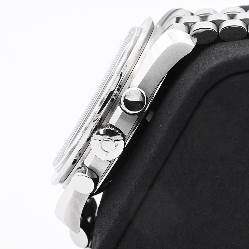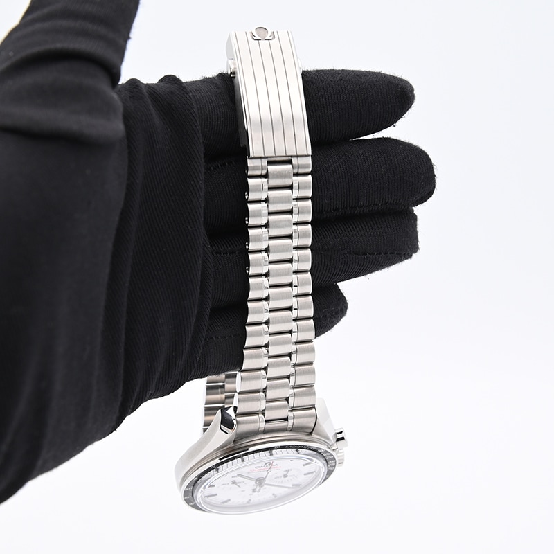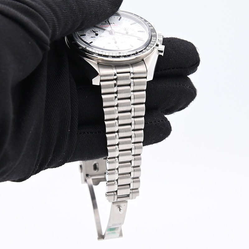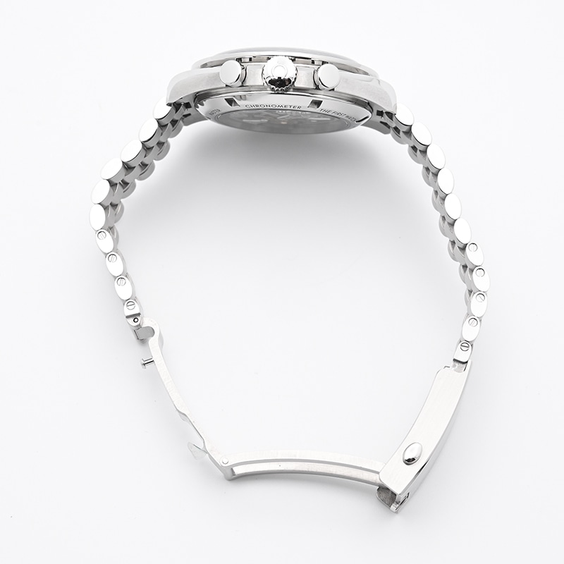 ベゼルリングは月面着陸に使用された第四世代スピードマスターを彷彿させるドットオーバー90となっております。