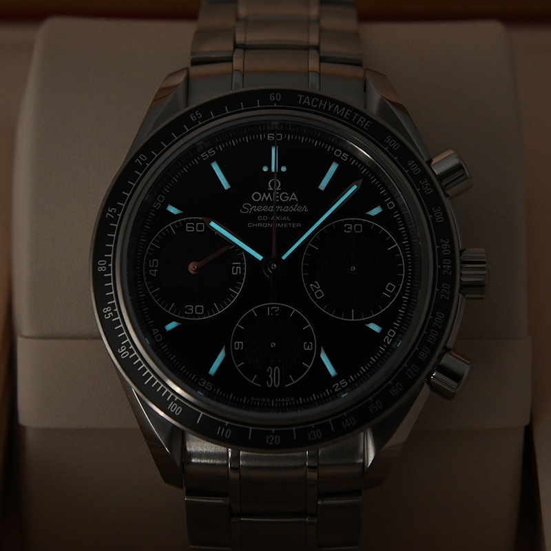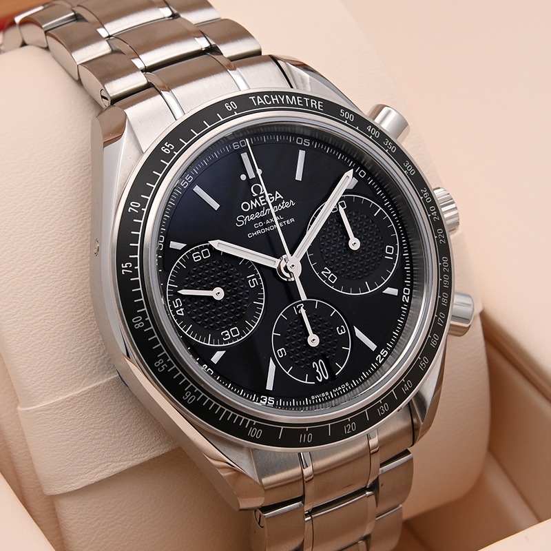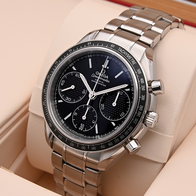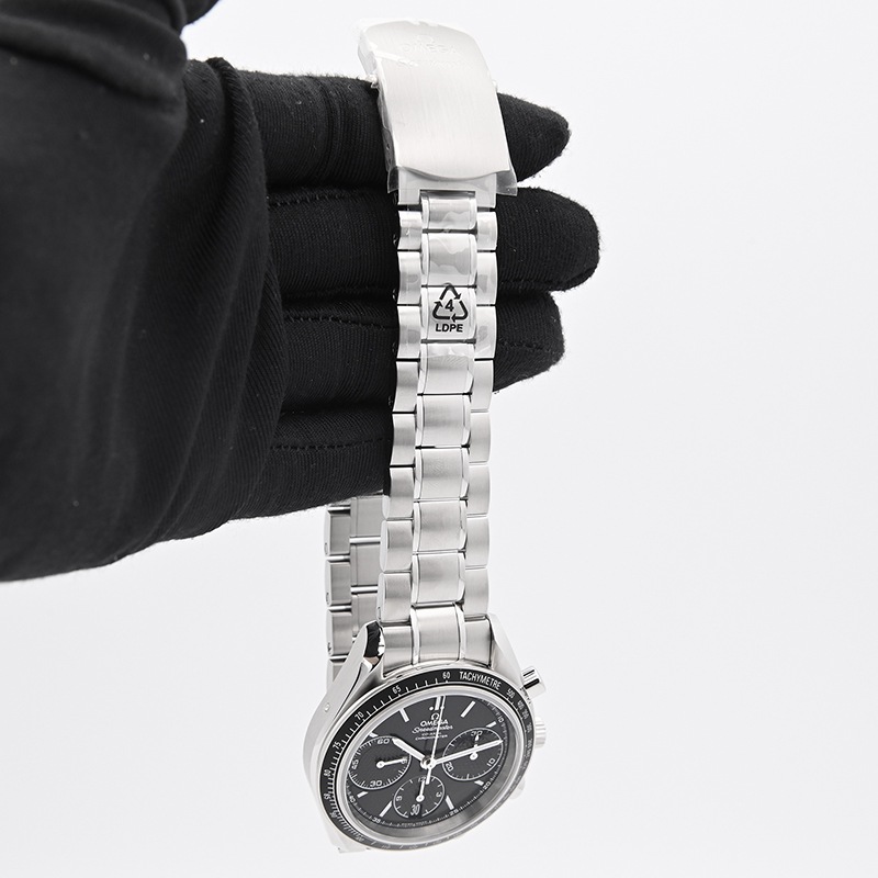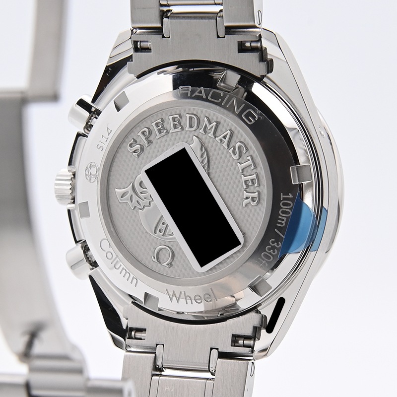 こちらのスピードマスター レーシングはケース径40mmの使いやすいサイズとなっております。