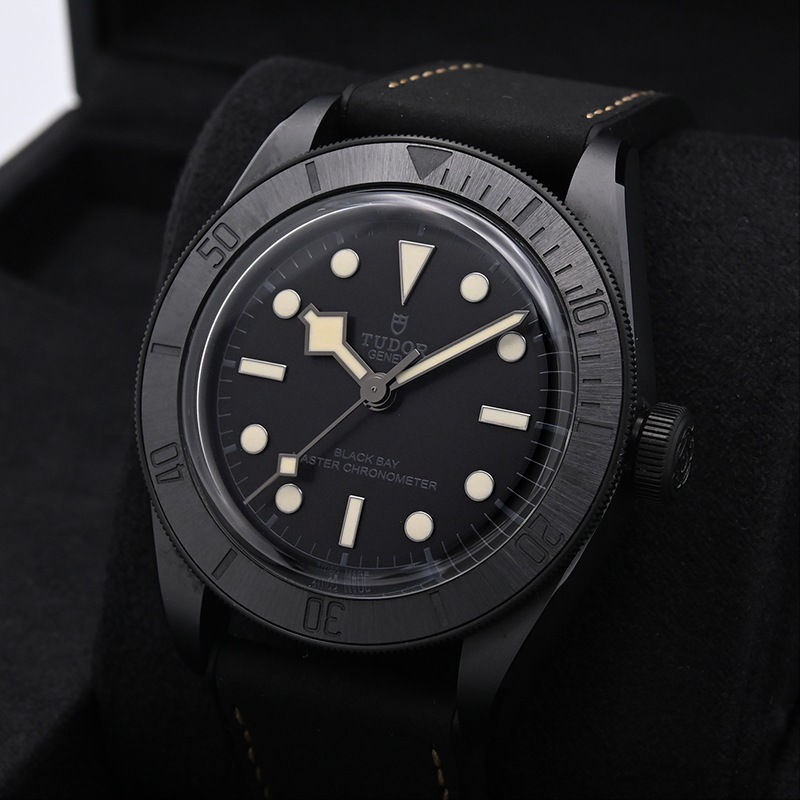 チューダー2021年の新作で、高級感のあるオールブラックのセラミック製ケースを採用した「ブラックベイ セラミック」。