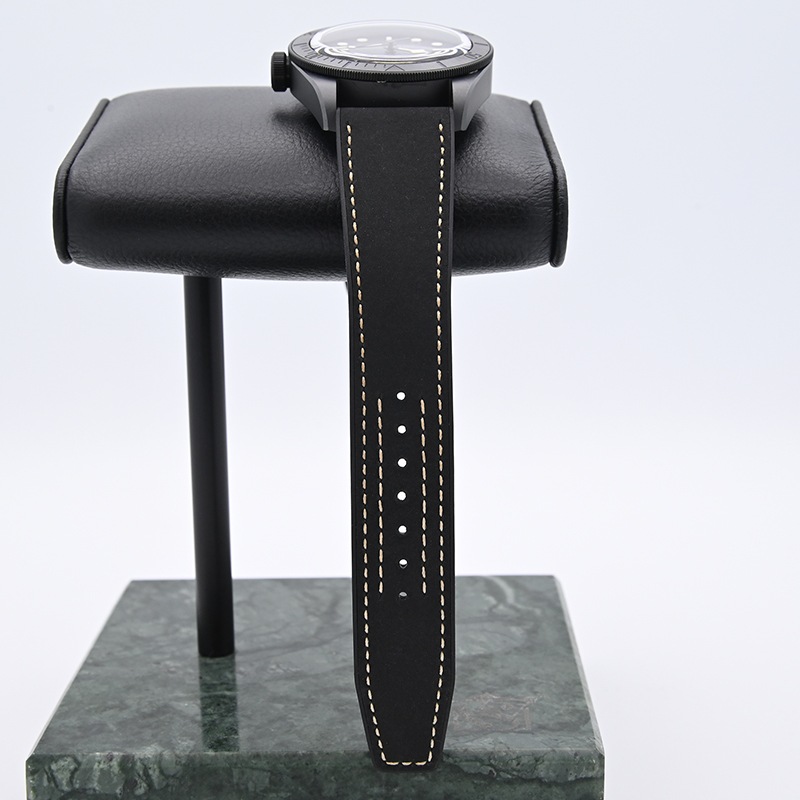 パワーリザーブは70時間、防水性能200Mと実用性も高く、ストラップは表側がレザー、裏側がラバーになっており着用感も良好です。