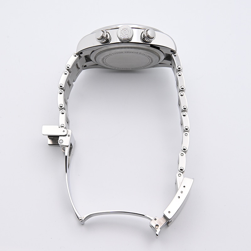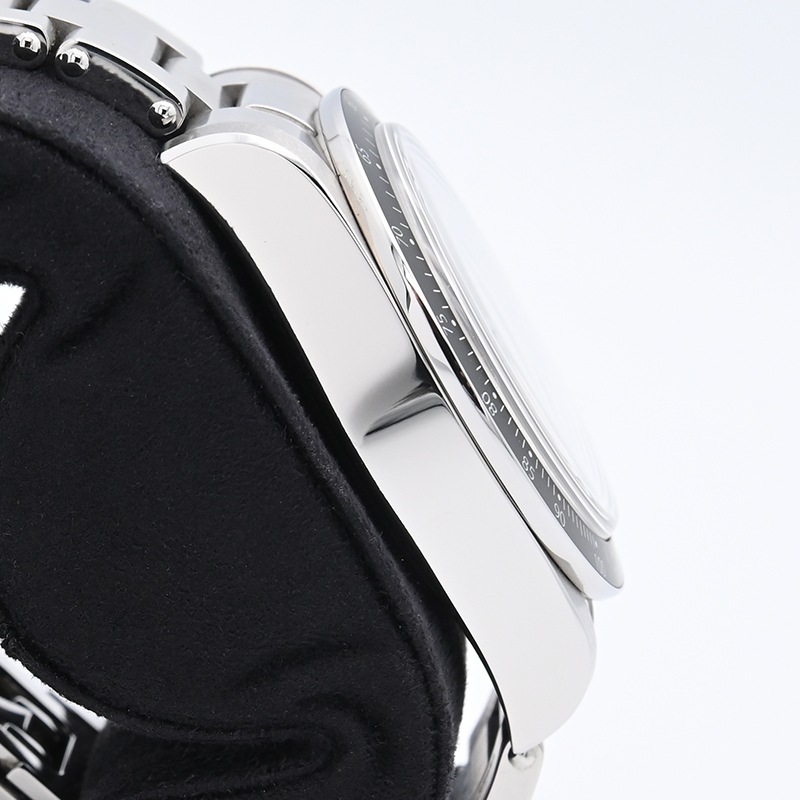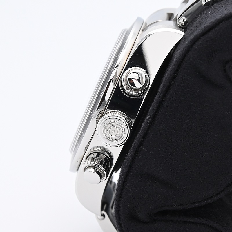 ケース径は41mm、アルマイト加工が施されたマットブラックのベゼルディスクを採用し、オパラインと呼ばれるホワイト文字盤に2つのブラックカウンターを配した通称「パンダダイヤル」と呼ばれる人気モデルです。