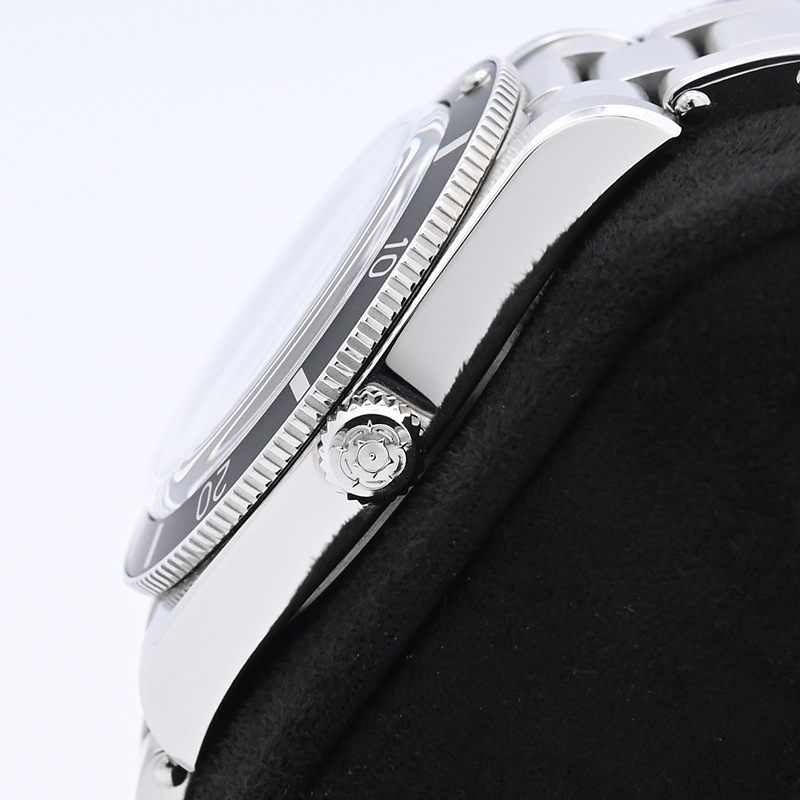 ドーム型のサファイアクリスタル風防やリューズガードが無いデザインなどクラシックな雰囲気のダイバーズウォッチです。