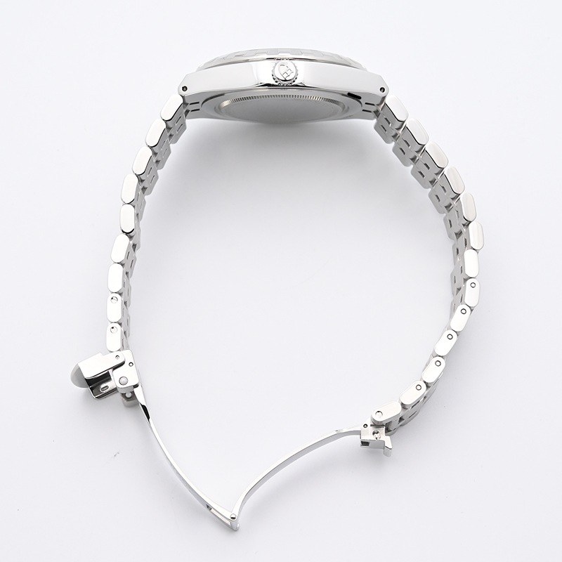 ケースと一体型の5列リンクのブレスレットに、表面のポリッシュと溝の彫りが交互に施されたノッチドベゼルを備えたスポーツシックなデザインが特徴で、4種類のサイズと多彩なダイヤルを展開しています。