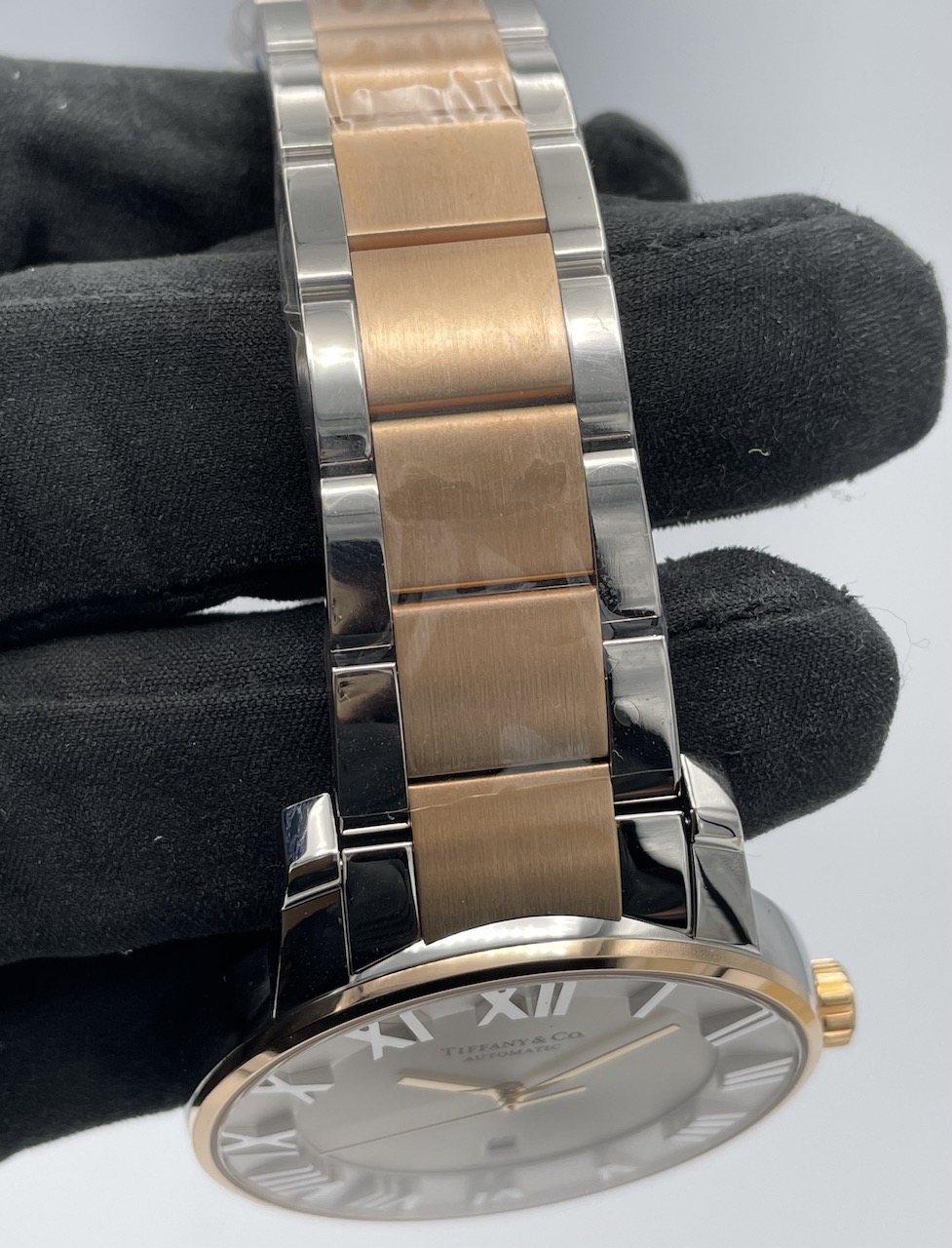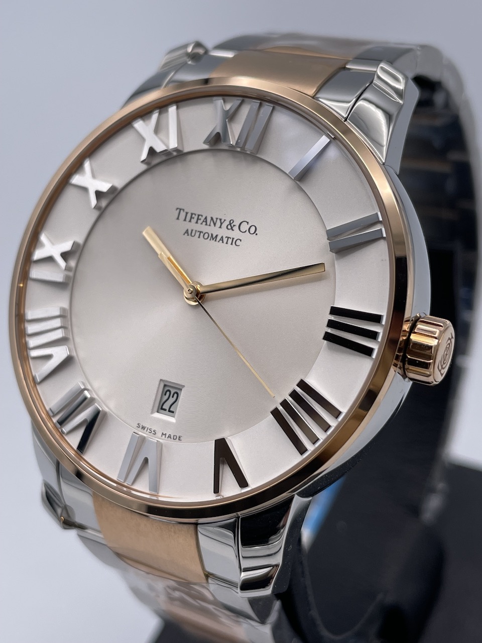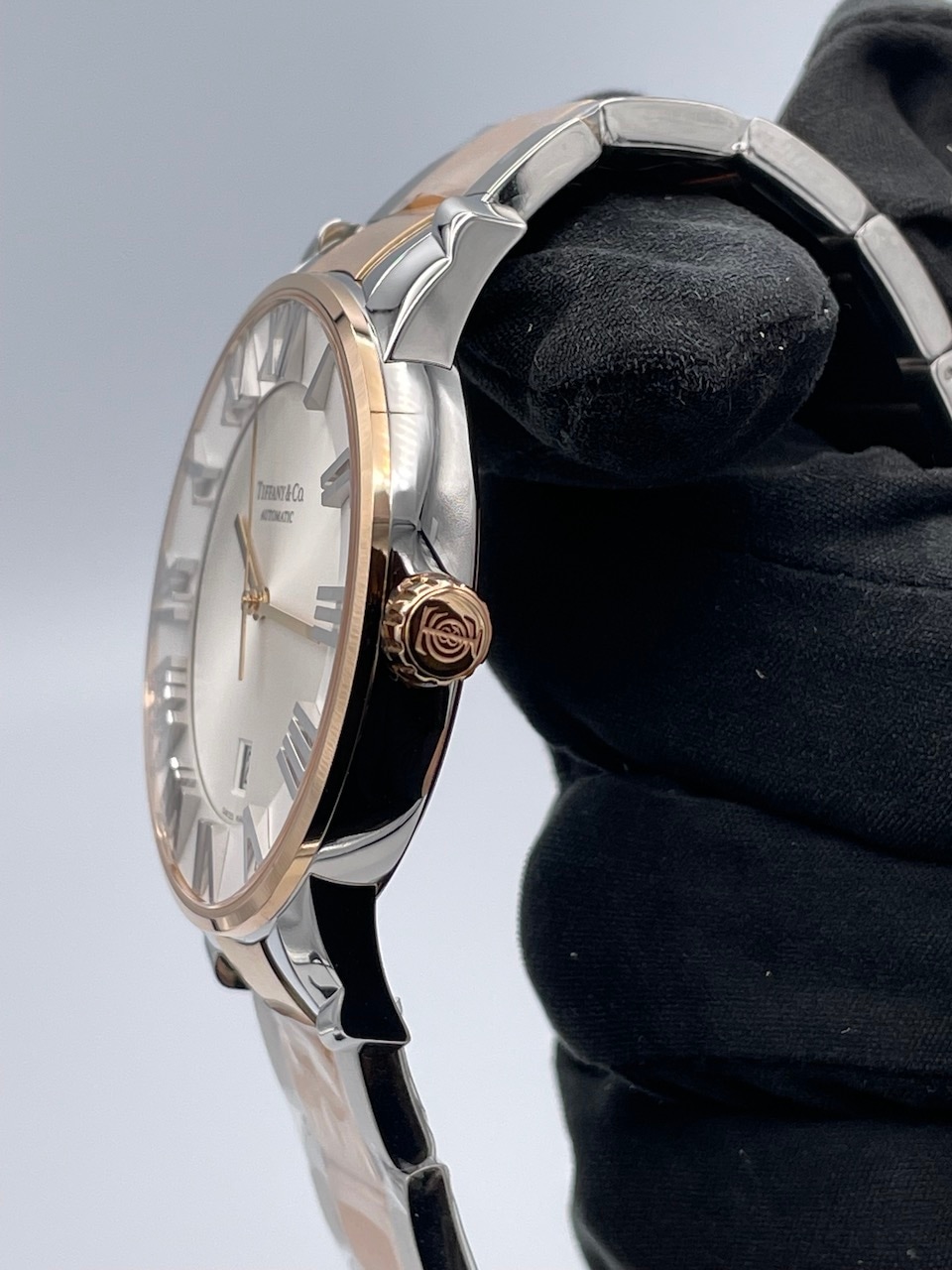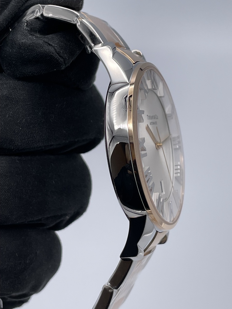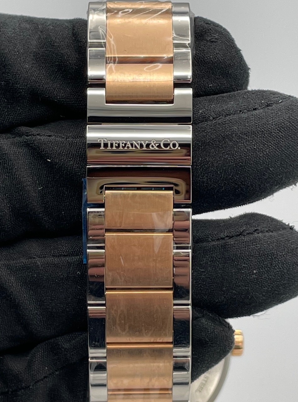 ケースはステンレスと18Kローズゴールド製の2トーンで、ブレスレットはステンレスにローズゴールドのPVDコーティングされた仕様となっております。