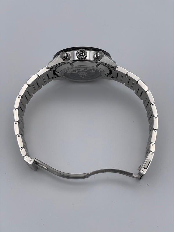 ブラックのカウンターを配した黒文字盤がスポーティな印象ながら高級感のある仕上がりとなっています。