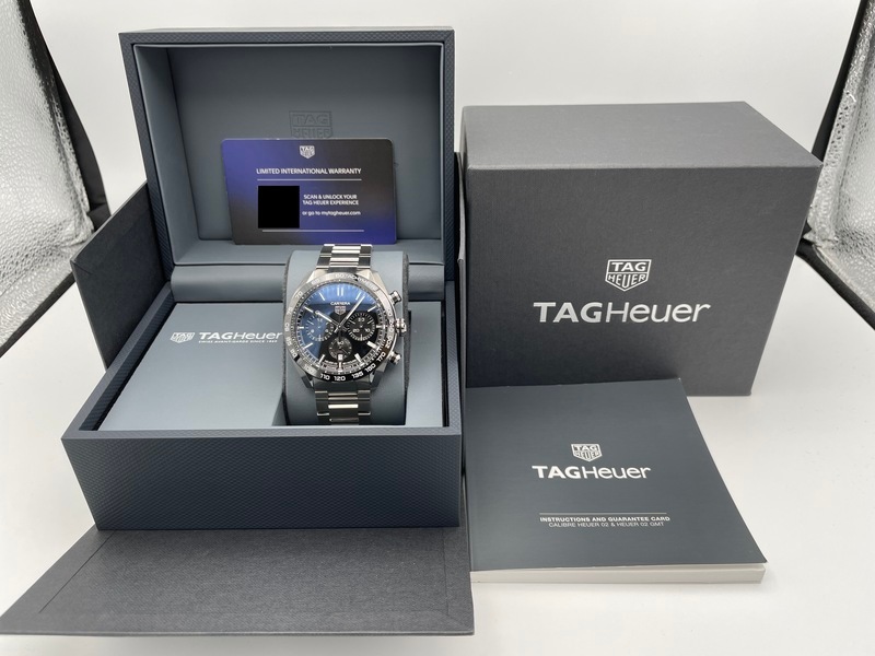 TAG Heuer カレラ キャリバー ホイヤー02 クロノグラフ 44mm 黒文字盤 Ref.CBN2A1B.BA0643の入荷です。