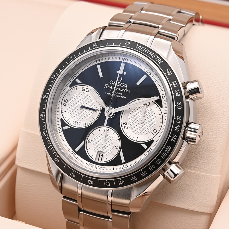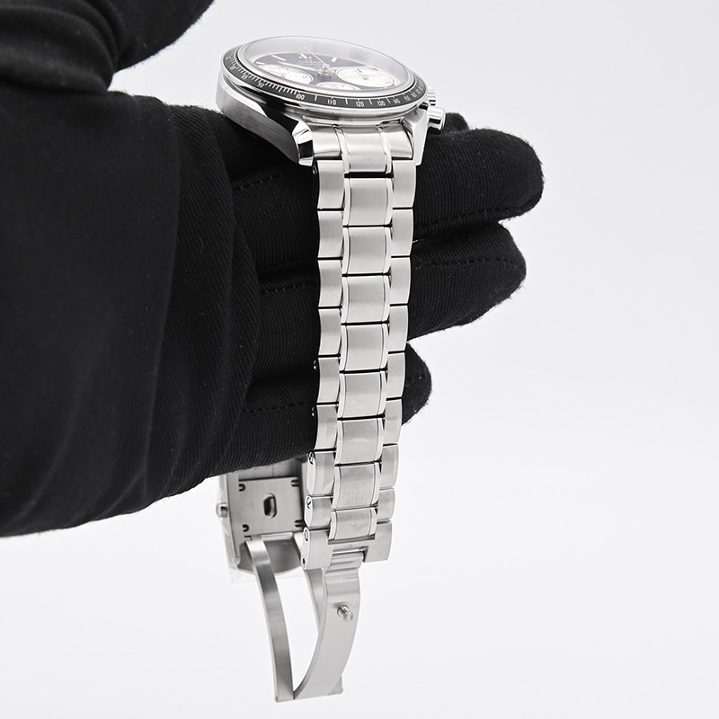 こちらのスピードマスター レーシングはケース径40mmの使いやすいサイズとなっております。