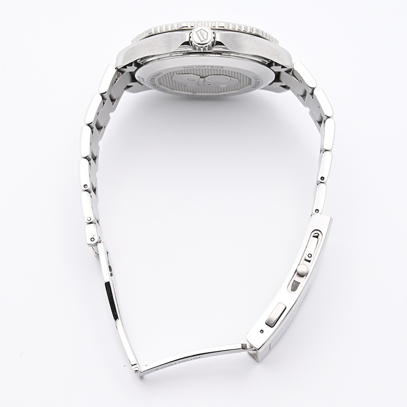 こちらは2021年に発表されたモデルで、ケース径は43mm、サンレイ仕上げが施された鮮やかなブルーダイヤルにブルーのセラミック製の逆回転防止ベゼルを備えています。