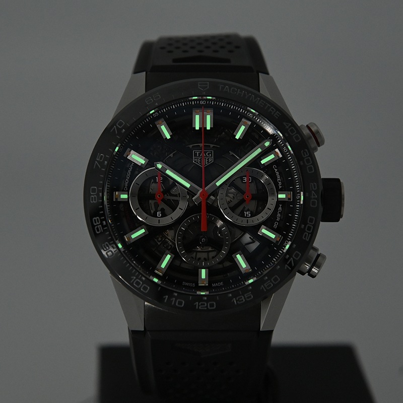 ムーブメントは80時間のパワーリザーブを備えた自社製Cal.ホイヤー02を搭載。