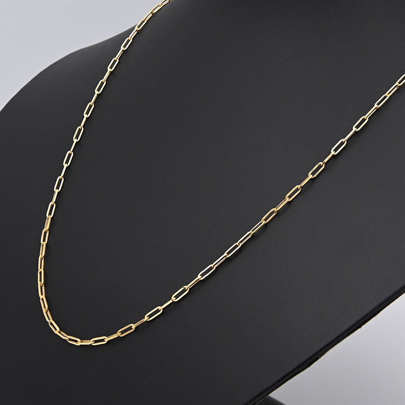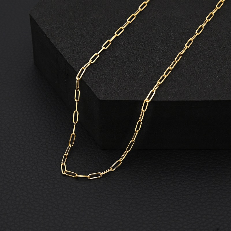 ペーパークリップの形をモチーフにした細長い楕円形のリンクが連なったチェーン ネックレスです。