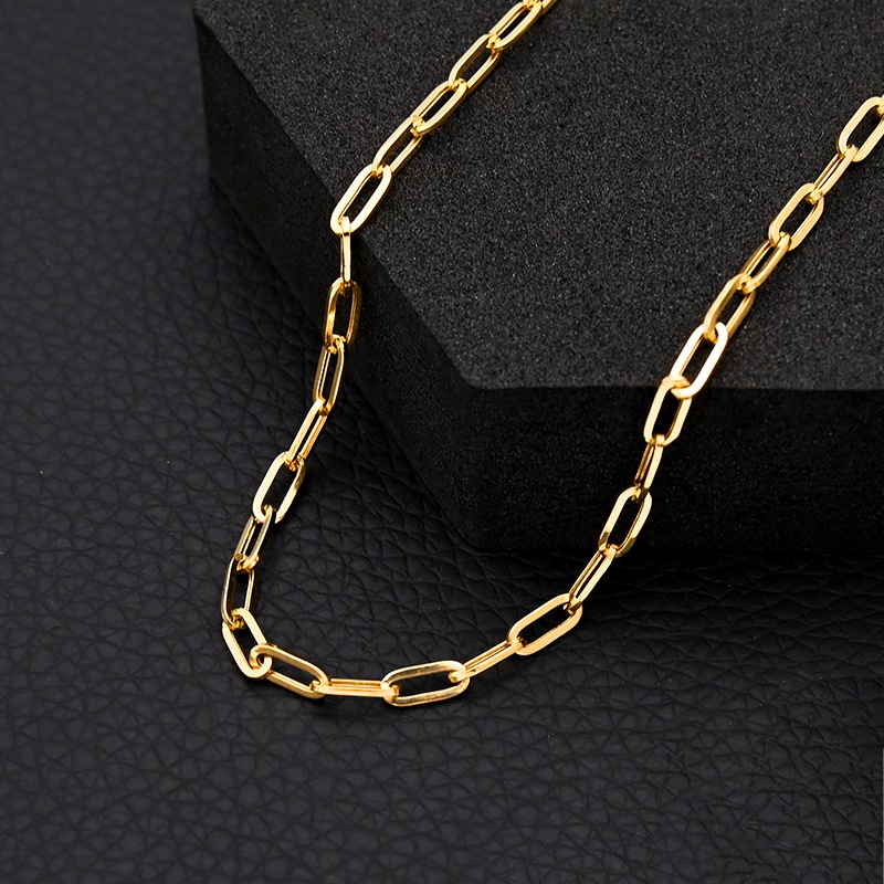 ペーパークリップの形をモチーフにした細長い楕円形のリンクが連なったチェーン ネックレスです。