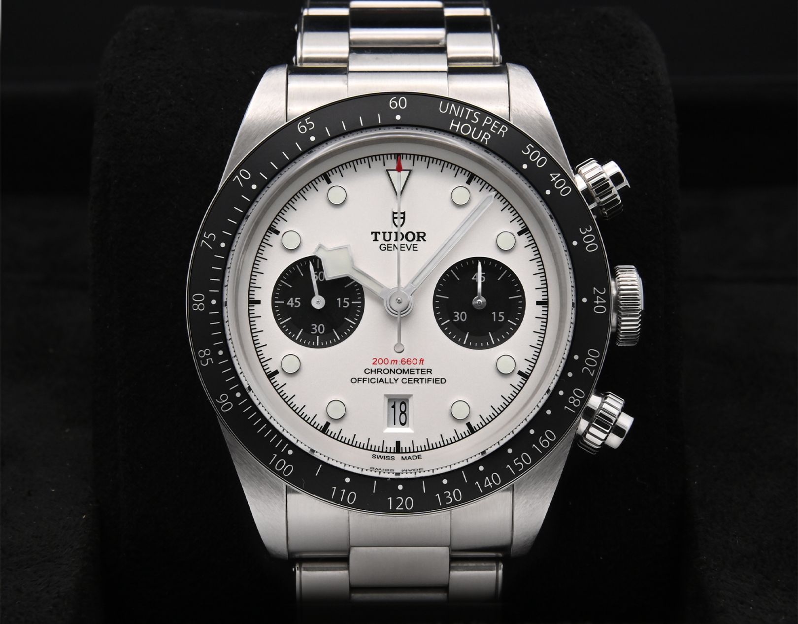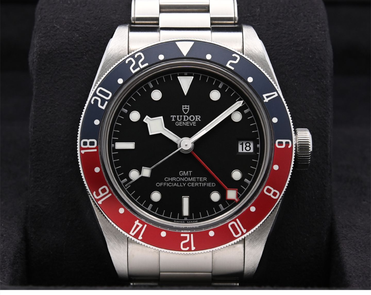 機能:超高耐磁性能ムーブメント、クロノメーター、日付表示、ねじ込み式リューズ、シースルーケースバック、タイムゾーンの機能