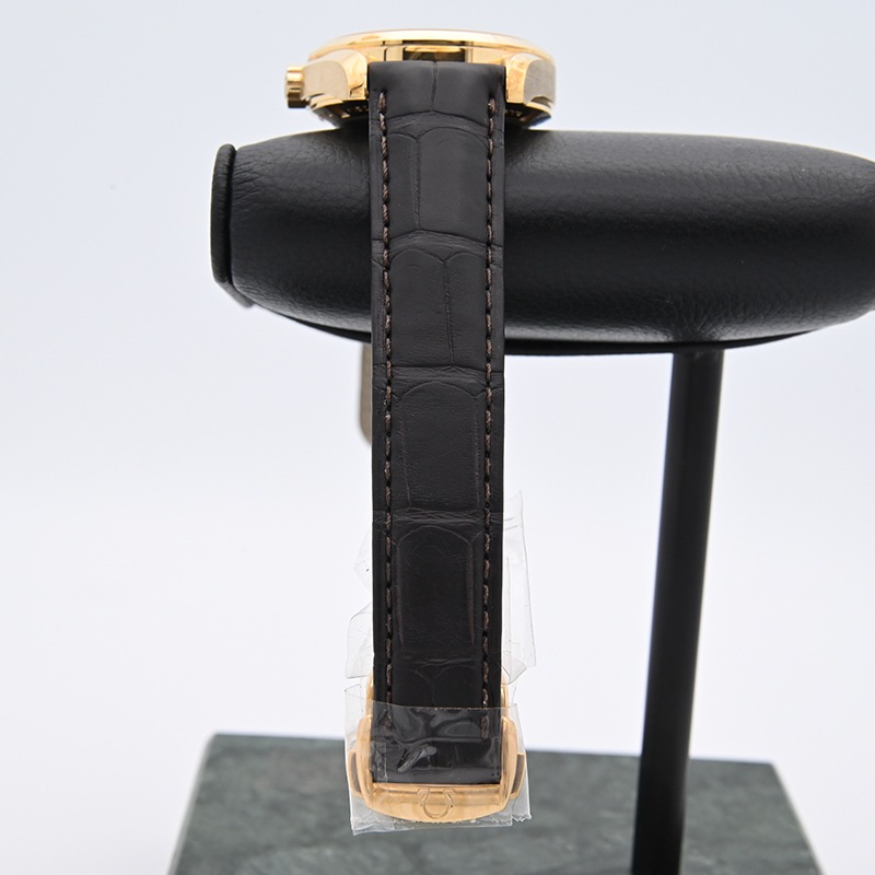 18Kイエローゴールド製の金無垢ケースにブラウンのレザーストラップがマッチしたラグジュアリーなおすすめモデルです。